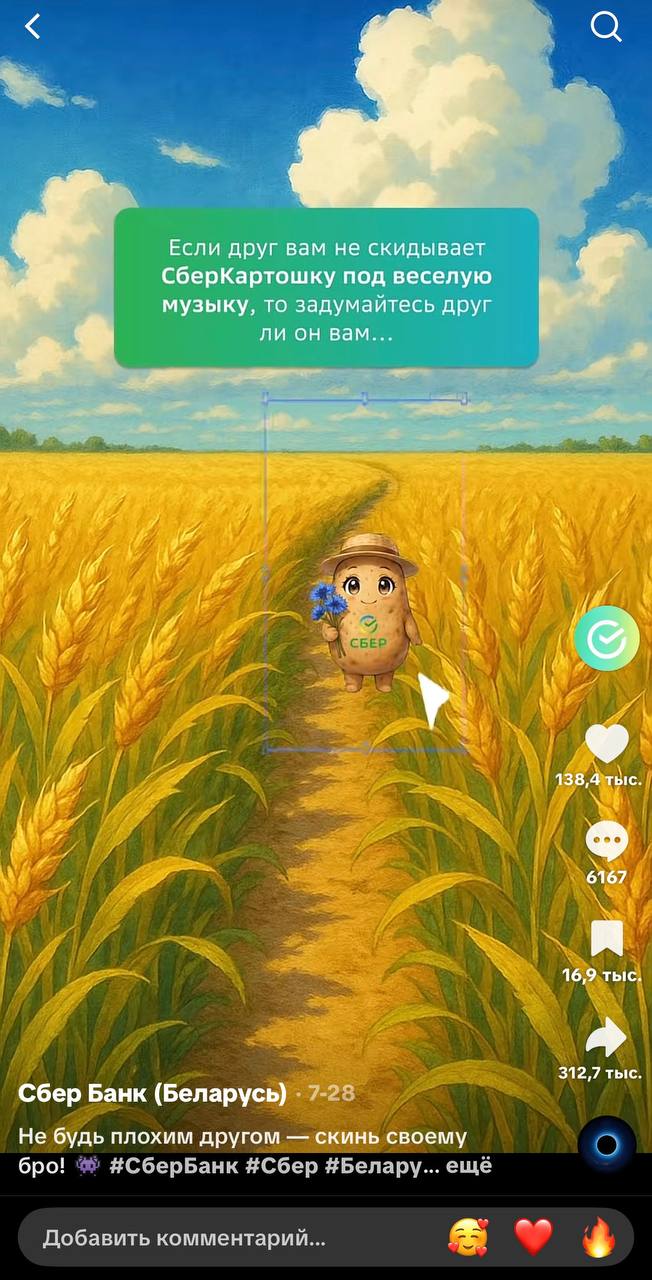 Реализованная стратегия продвижения ОАО «Сбер Банк» в TikTok показала высокую эффективность — за первые месяцы удалось увеличить число подписчиков в 20 раз, значительно увеличить охваты и вовлеченность аудитории. Органический рост показателей свидетельствует о правильном подборе контента, актуальных трендов и тональности коммуникации, что способствует укреплению узнаваемости бренда среди молодежи. Такой подход подтверждает эффективность использования платформы для формирования позитивного имиджа и повышения финансовой грамотности целевой аудитории. Данный кейс показывает, что готовность на такую смелость со стороны заказчика только улучшает результаты.