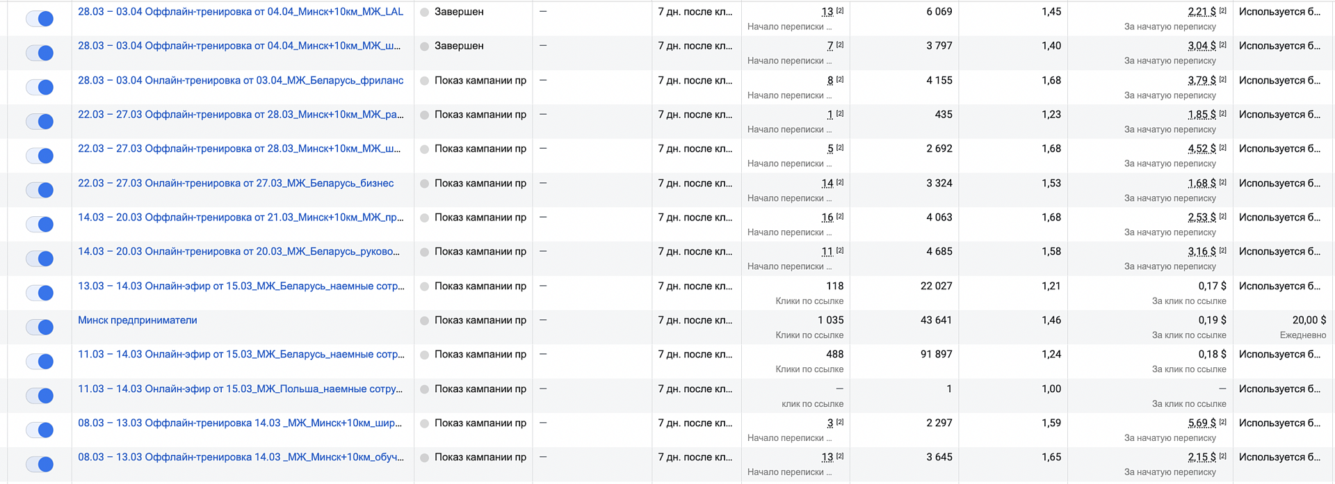 Запуски рекламных кампаний по проекту осуществлялись в Instagram. География рекламных кампаний: Беларусь, Казахстан, Польша. Лучшие результаты по стоимости за заявку в Instagram показывали запуски на: